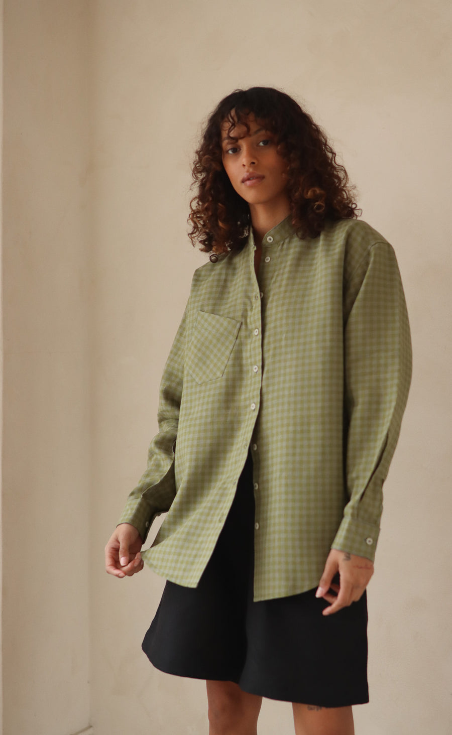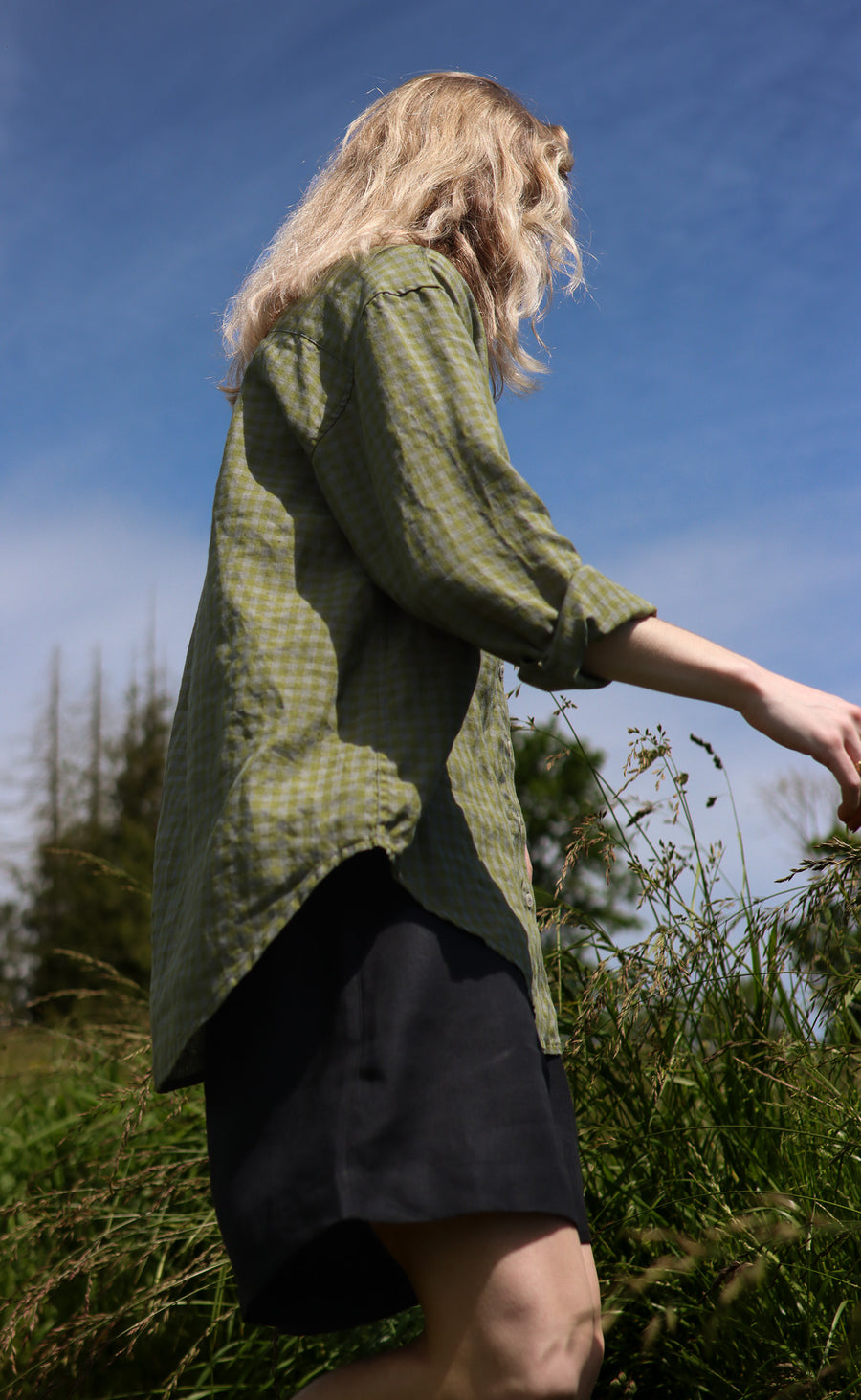 The Friend - Wayward Fit Tunic - Willow & Grey Check 100% Linen